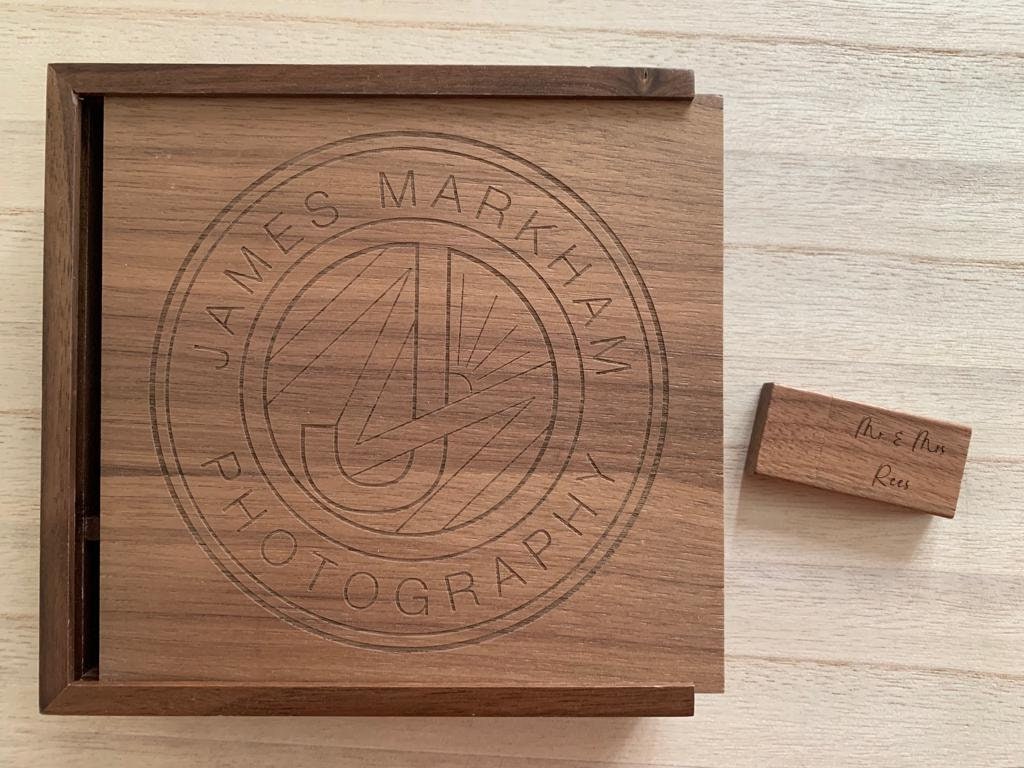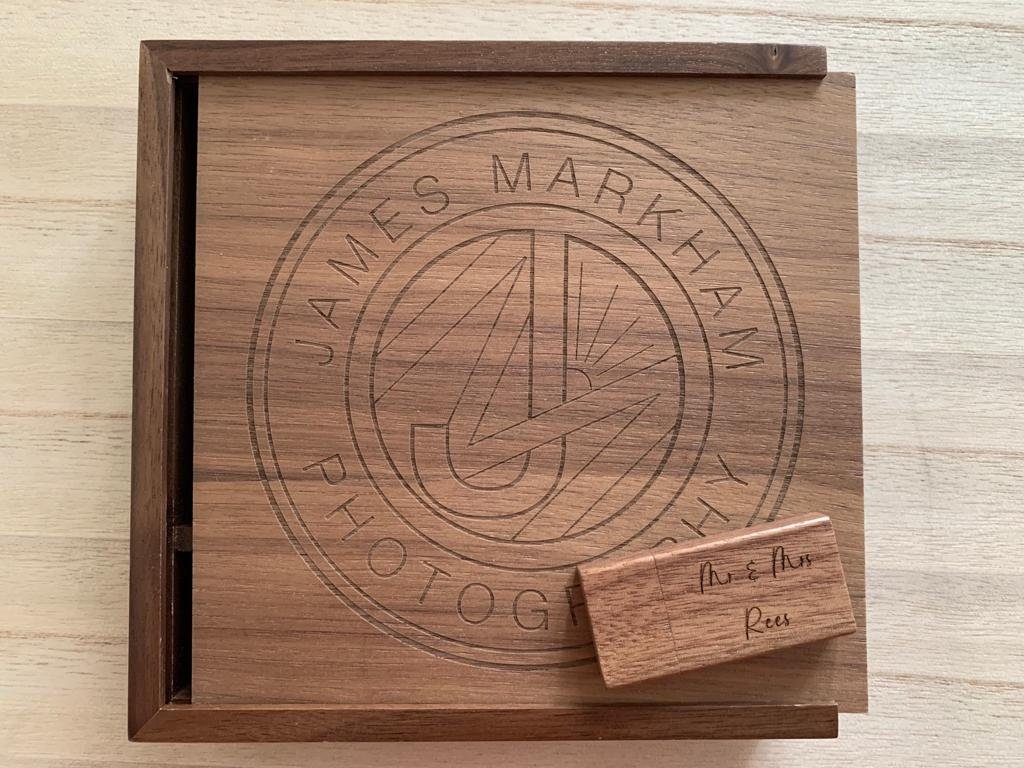 This custom USB photo box comes with a sleek design in walnut wood and can be personalised with your logo, engraved for a professional touch. Safely store and display your photos or documents while showcasing your brand with this unique and practical product.