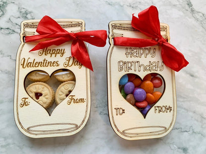 Personalised Engraved Wooden Valentine's Day Gift, Mason Jar, Date Night Gift, Romantic Gift, Engraved Gift for Chocolates or Biscuits