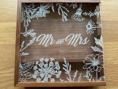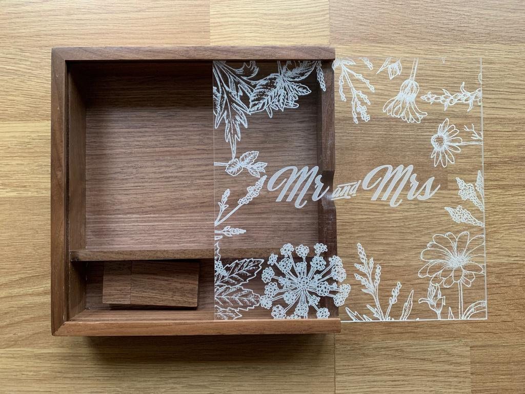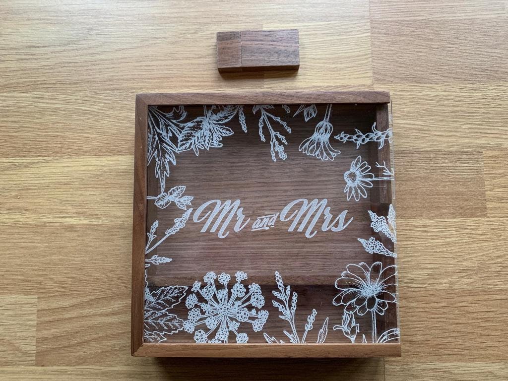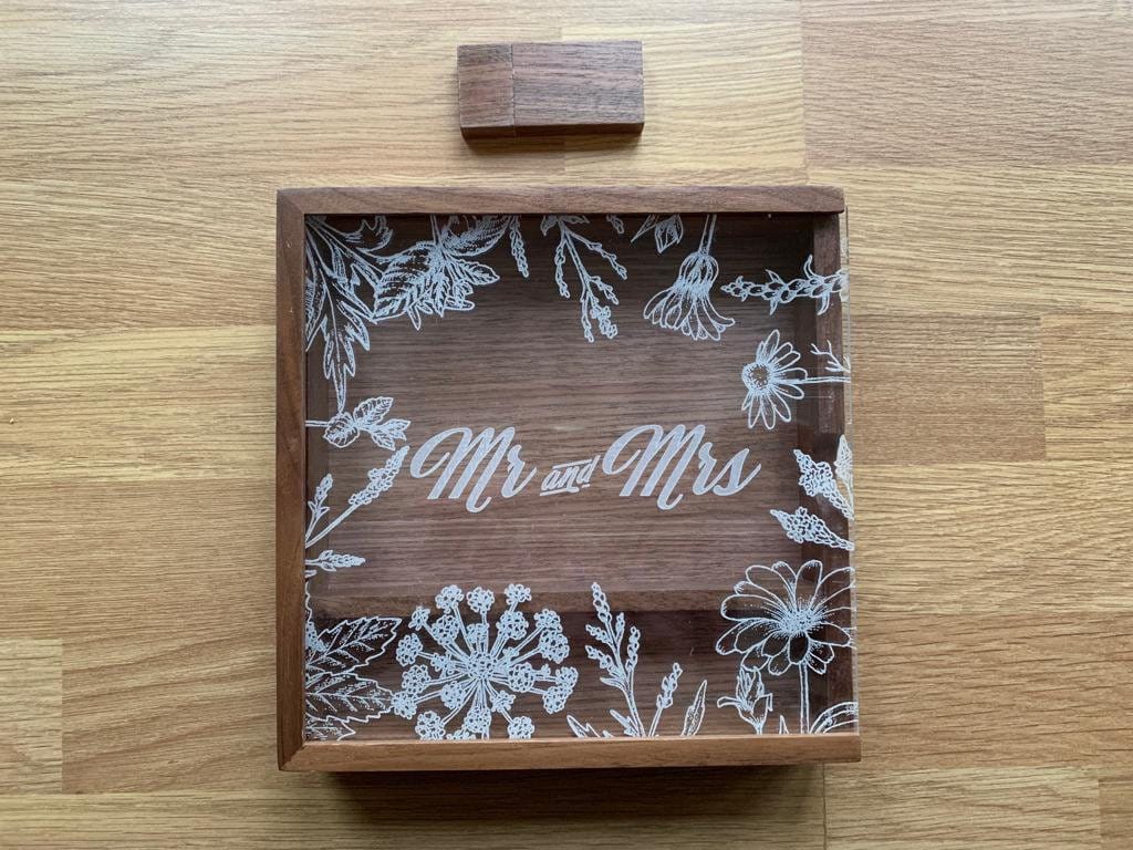 Personalised Wedding Memories Flash Drive USB Stick With Large Wooden Box in Maple or Acrylic, 4GB, 8GB, 16GB, 32GB, 64GB with Wild flowers