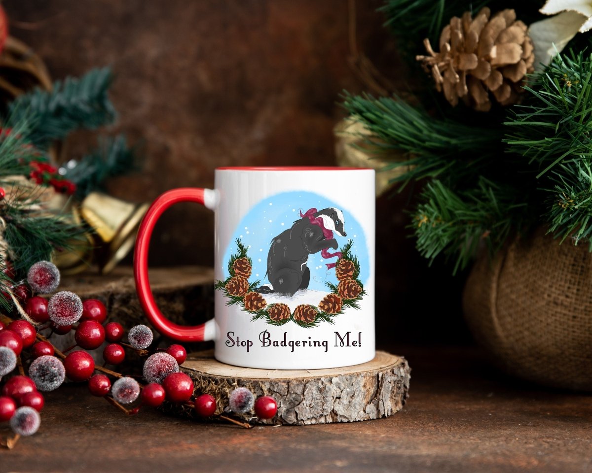 Stop Badgering Me! Badger Woodland Animal Christmas Mug