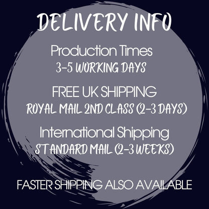 Items are sent via Royal Mail 2nd Class as standard which takes approx. 3-4 working days to arrive.