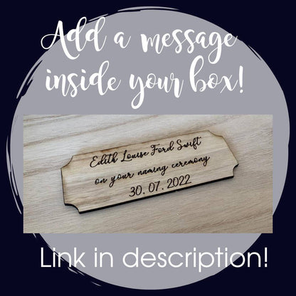To add a plaque to the inside of your box, you can order using the following link: