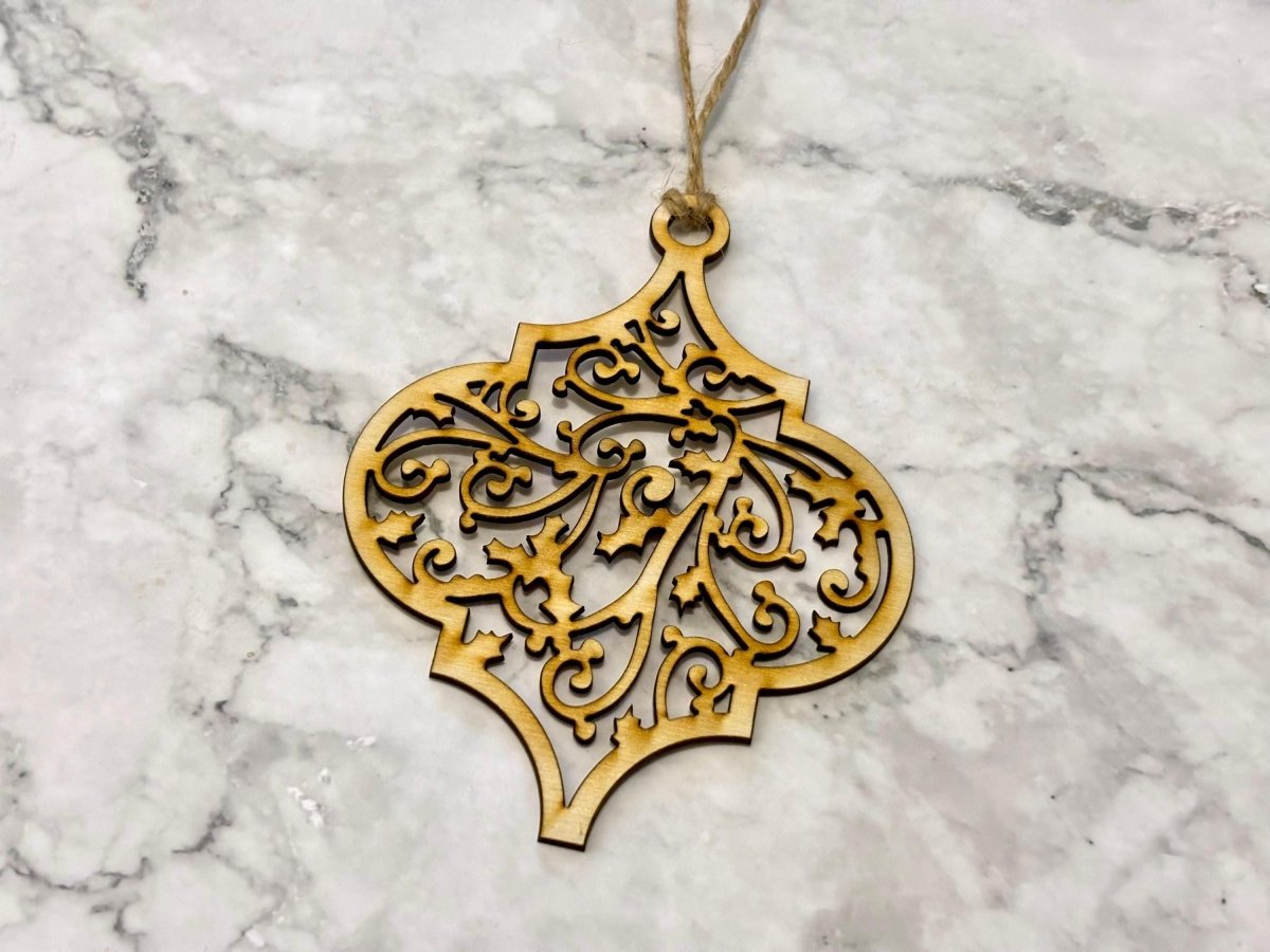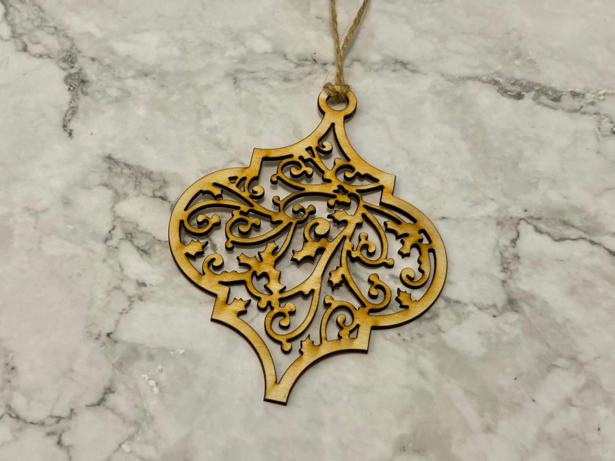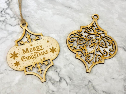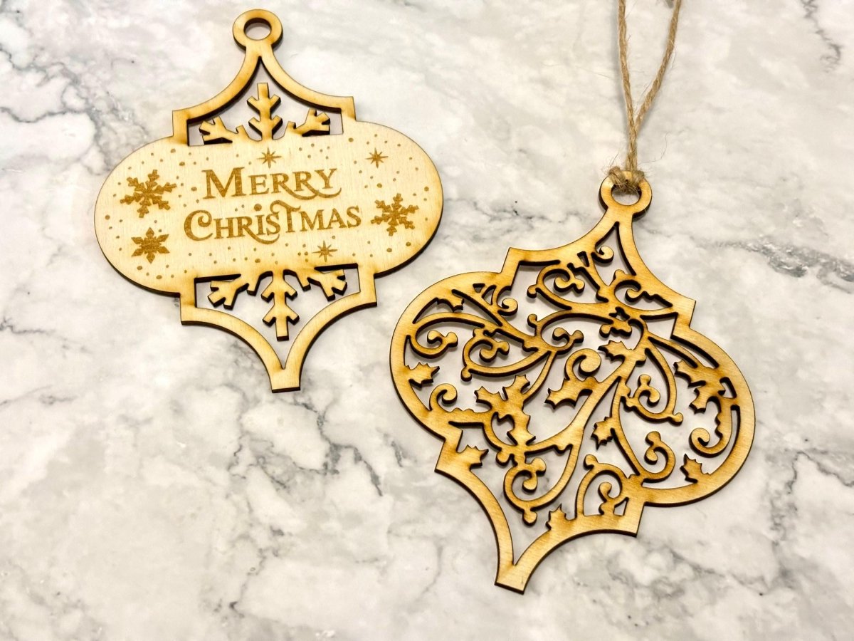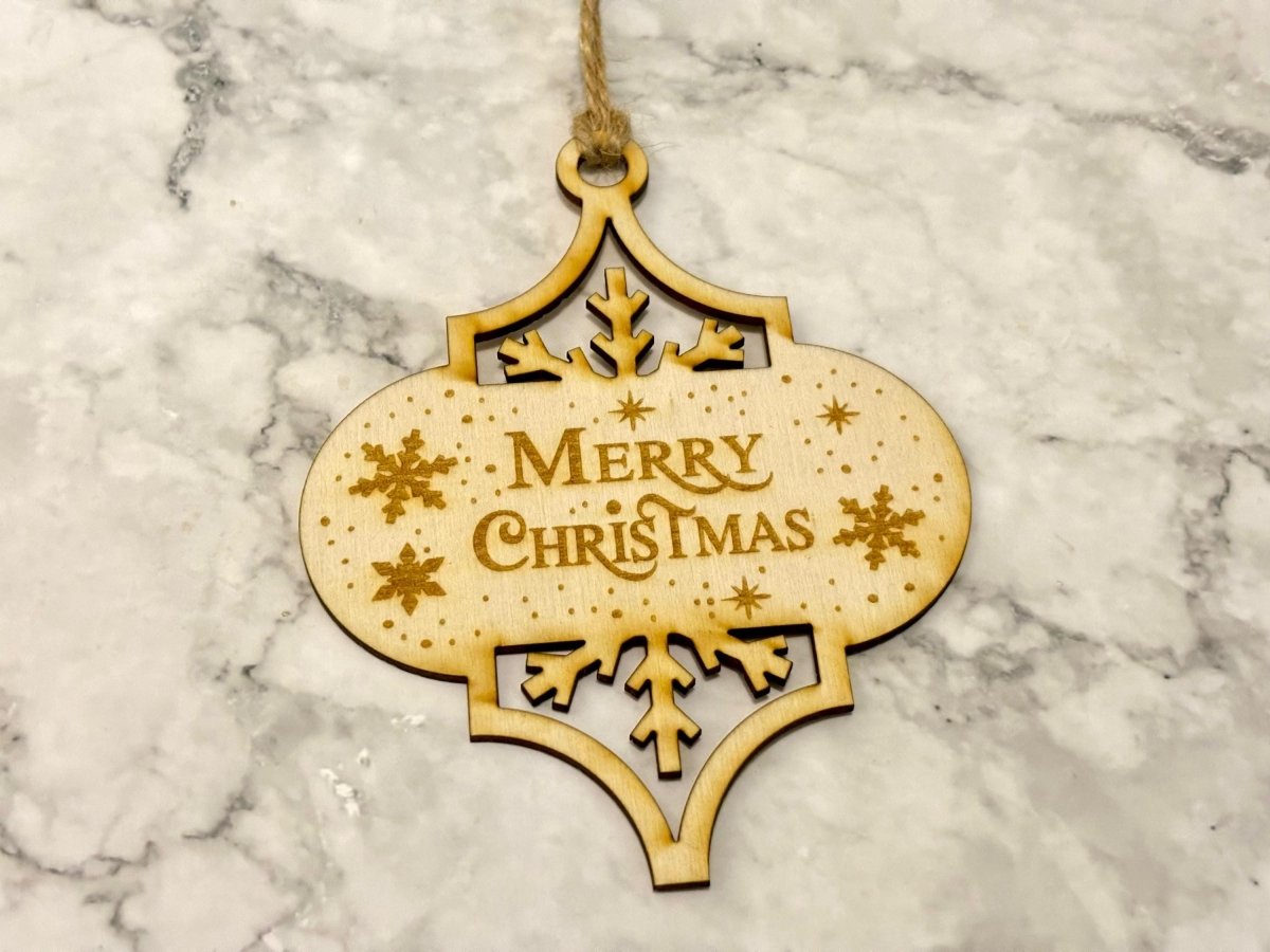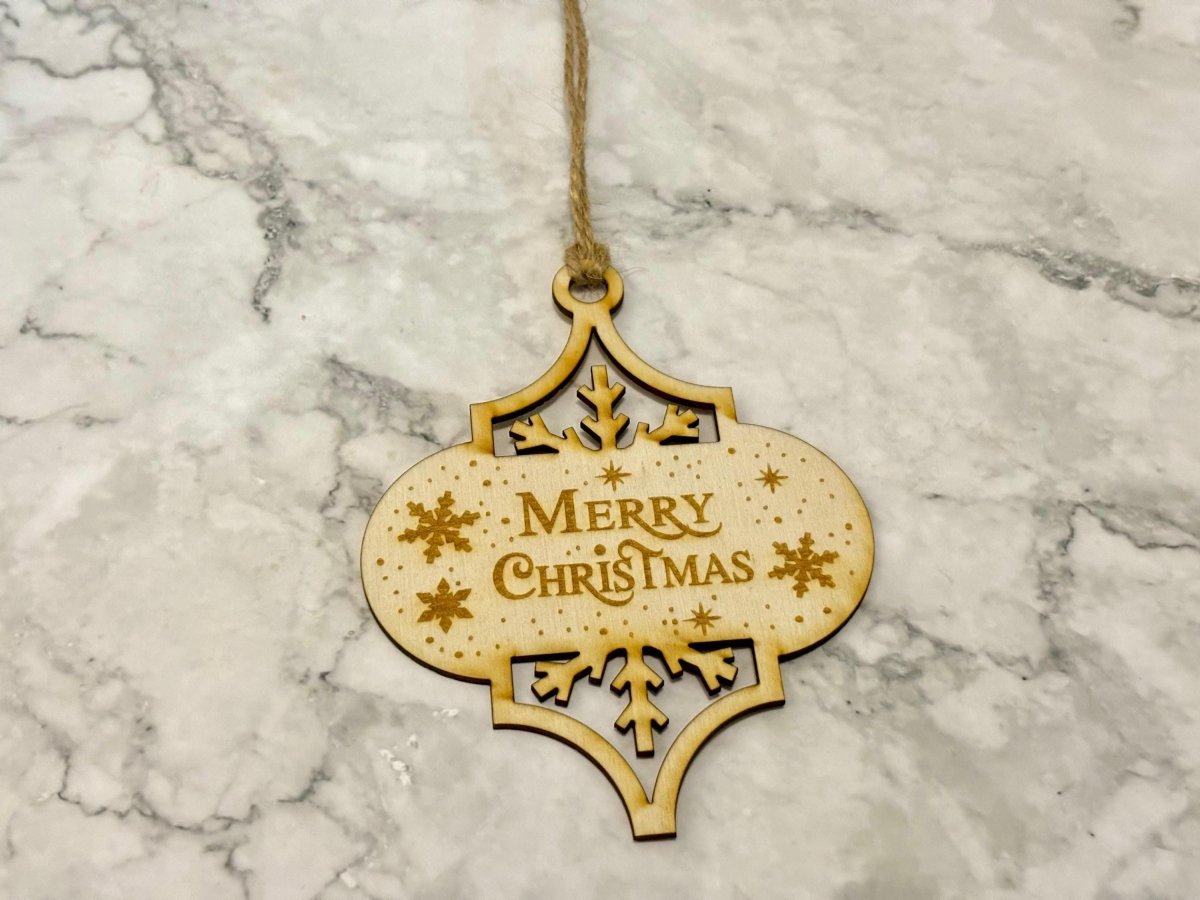 Wooden Engraved Christmas Bauble, Decorative Christmas Ornament