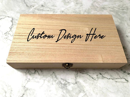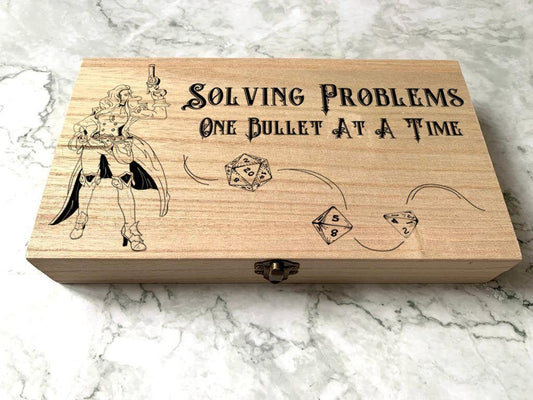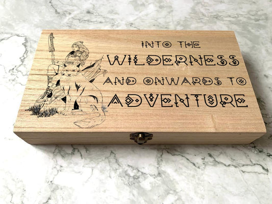 We can create custom dice boxes featuring your D&D or Pathfinder characters! Just send over your ideas or reference images by email, and we’ll work together to bring your character to life in a unique engraved design.