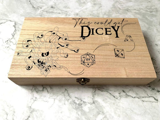 个性化雕刻 DnD 龙与地下城这可能会变得危险旁观者骰子盒