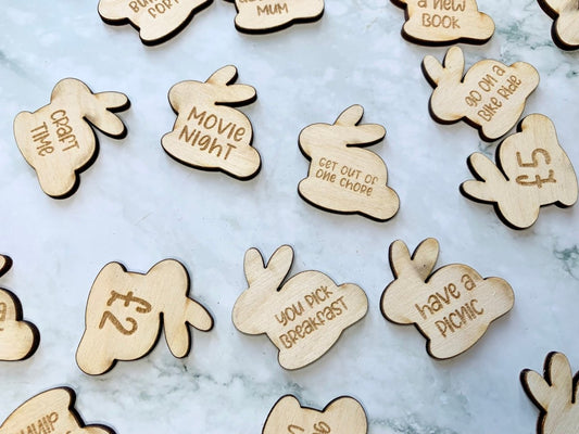 雕刻木制复活节兔子代币,复活节寻蛋代币,10 件套