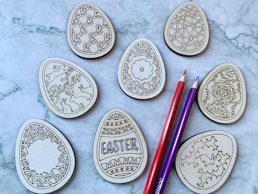 雕刻木制复活节彩蛋代币,彩色代币,复活节寻蛋代币,8 件套