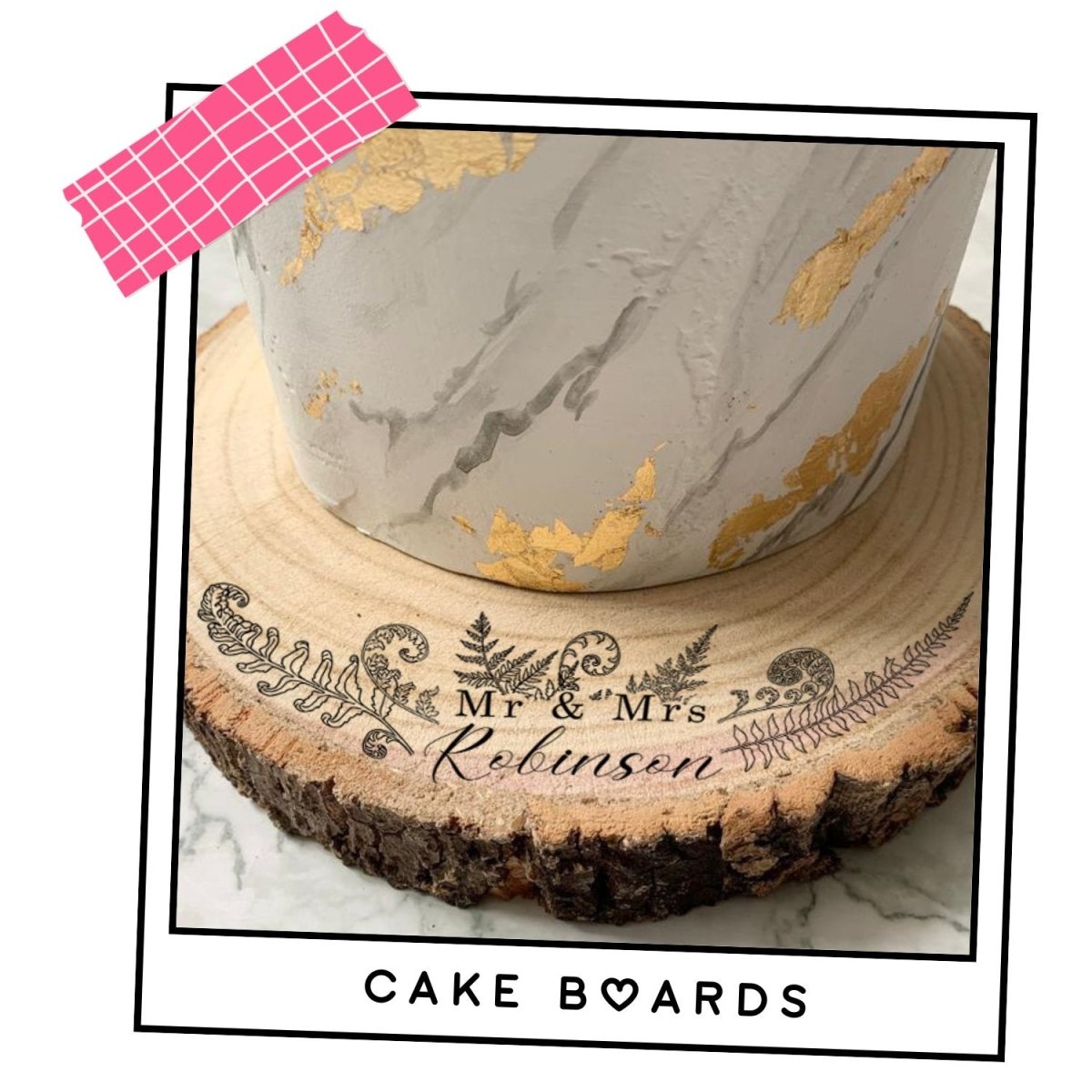 Personalised, engraved log wedding cake stands add rustic charm, showcasing your special...
