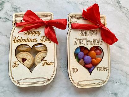 Personalised Engraved Wooden Easter Gift, Mother's Day Gift, Mason Jar, Date Night Gift, Engraved Gift for Chocolates or Biscuits