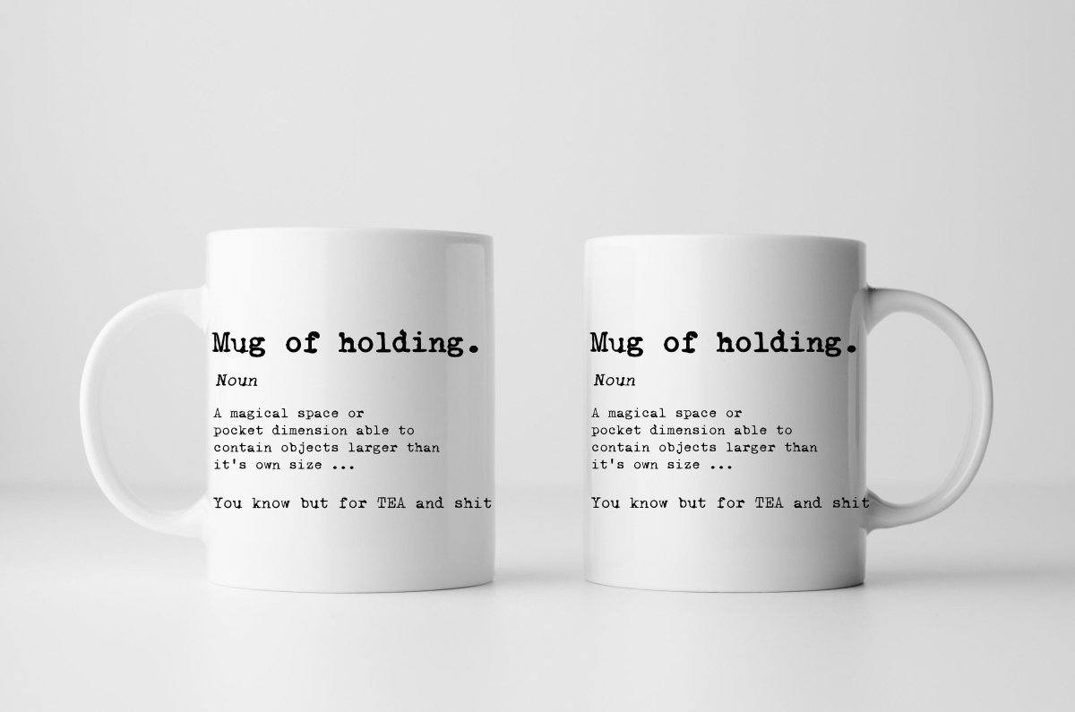 All mugs are white, 11oz ceramic mugs and are printed on demand via Printful.