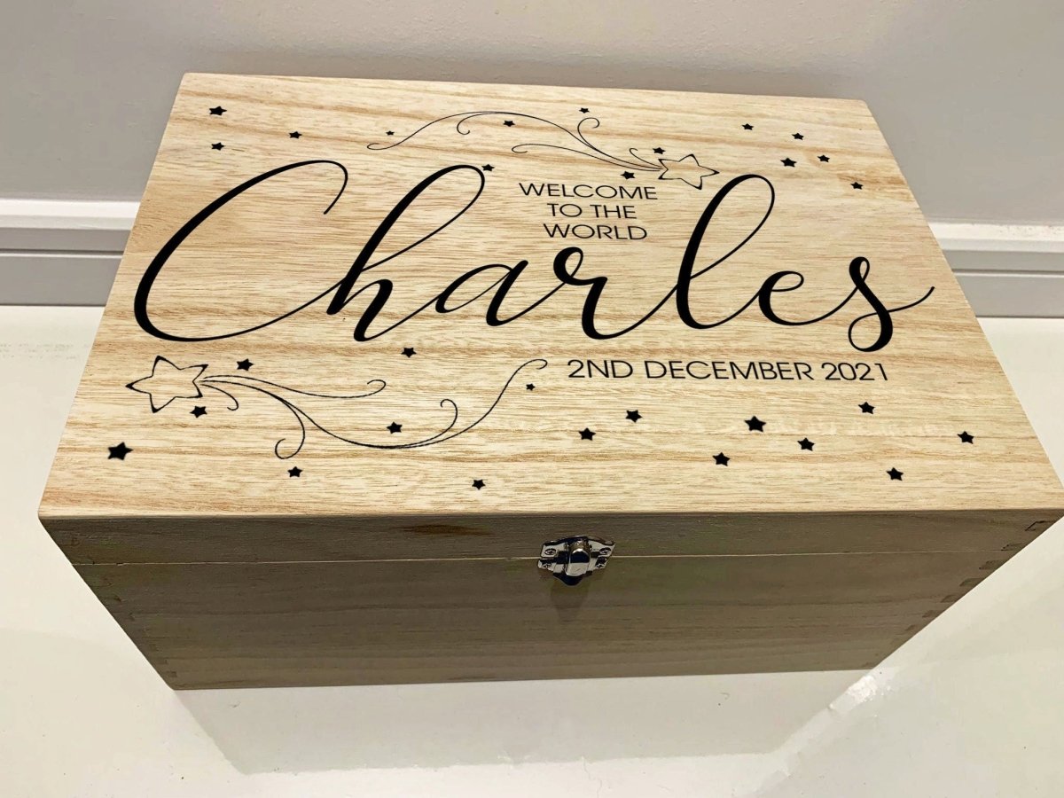 Each design is carefully engraved onto premium wood, ensuring a finish that’s both stunning and durable. Our keepsake boxes are made from 100% paulownia wood, offering a lightweight yet sturdy finish, and can only be found through us. Whether it’s a keepsake to treasure forever or a party piece to make an occasion extra special, our creations are made to impress.