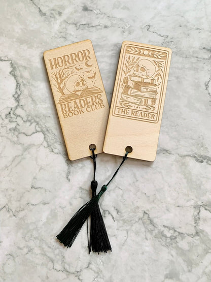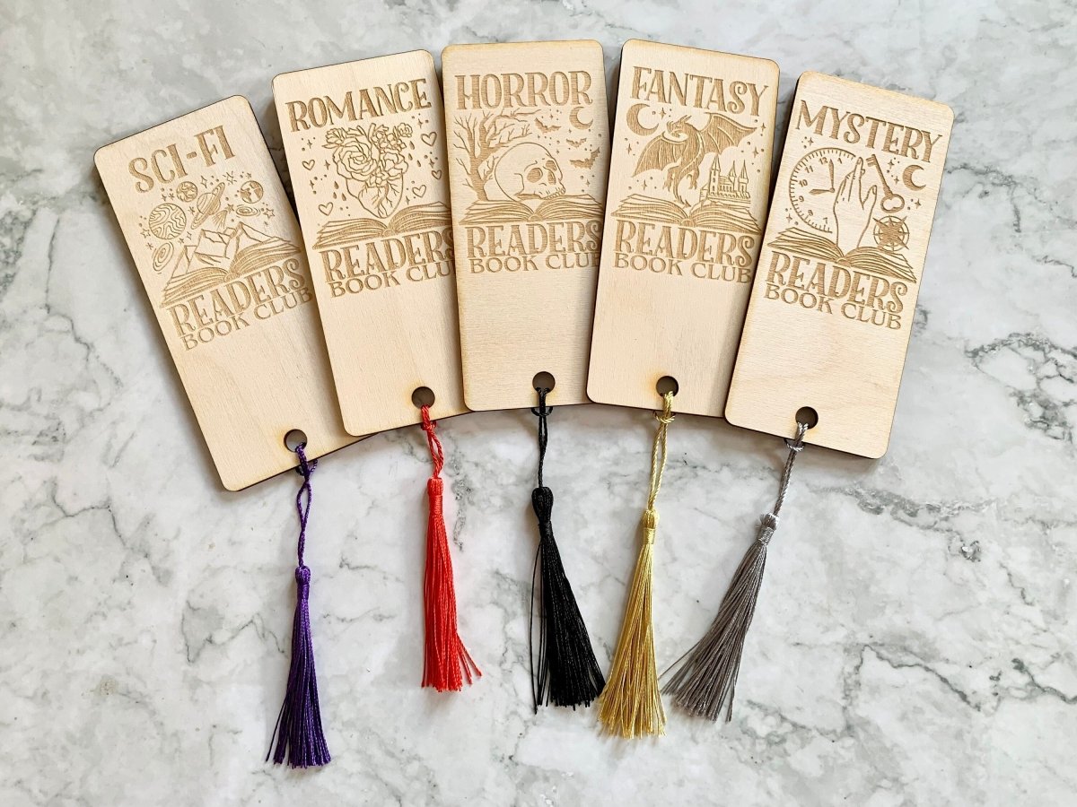 Personalised Engraved Wooden Readers Club Bookmark, Fantasy Bookmark, Horror Bookmark, Mystery Bookmark, Romance Bookmark, Sci Fi Bookmark