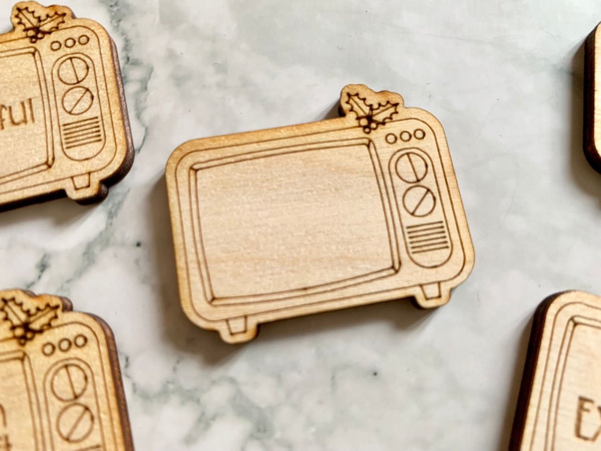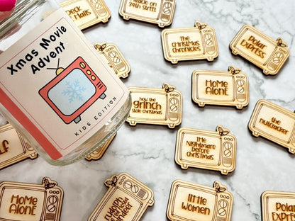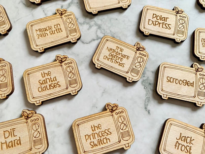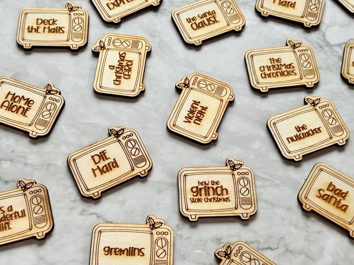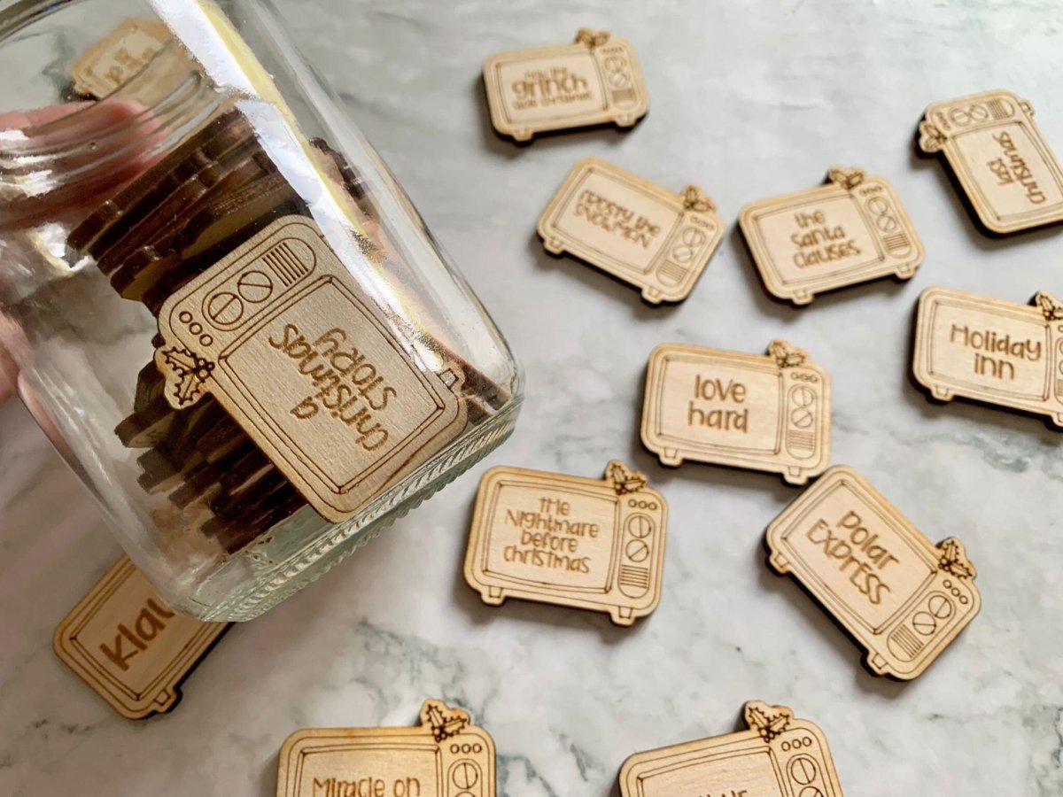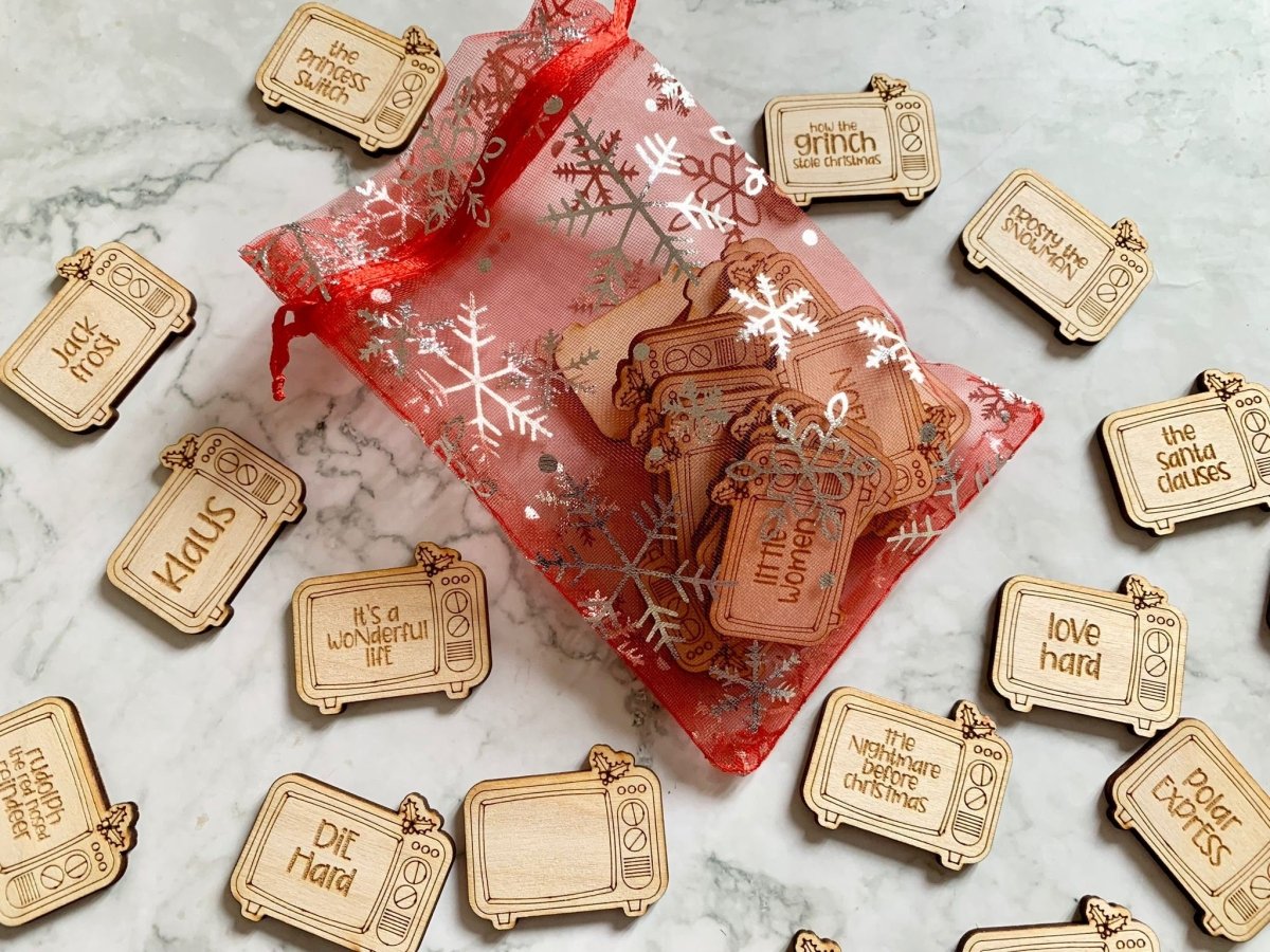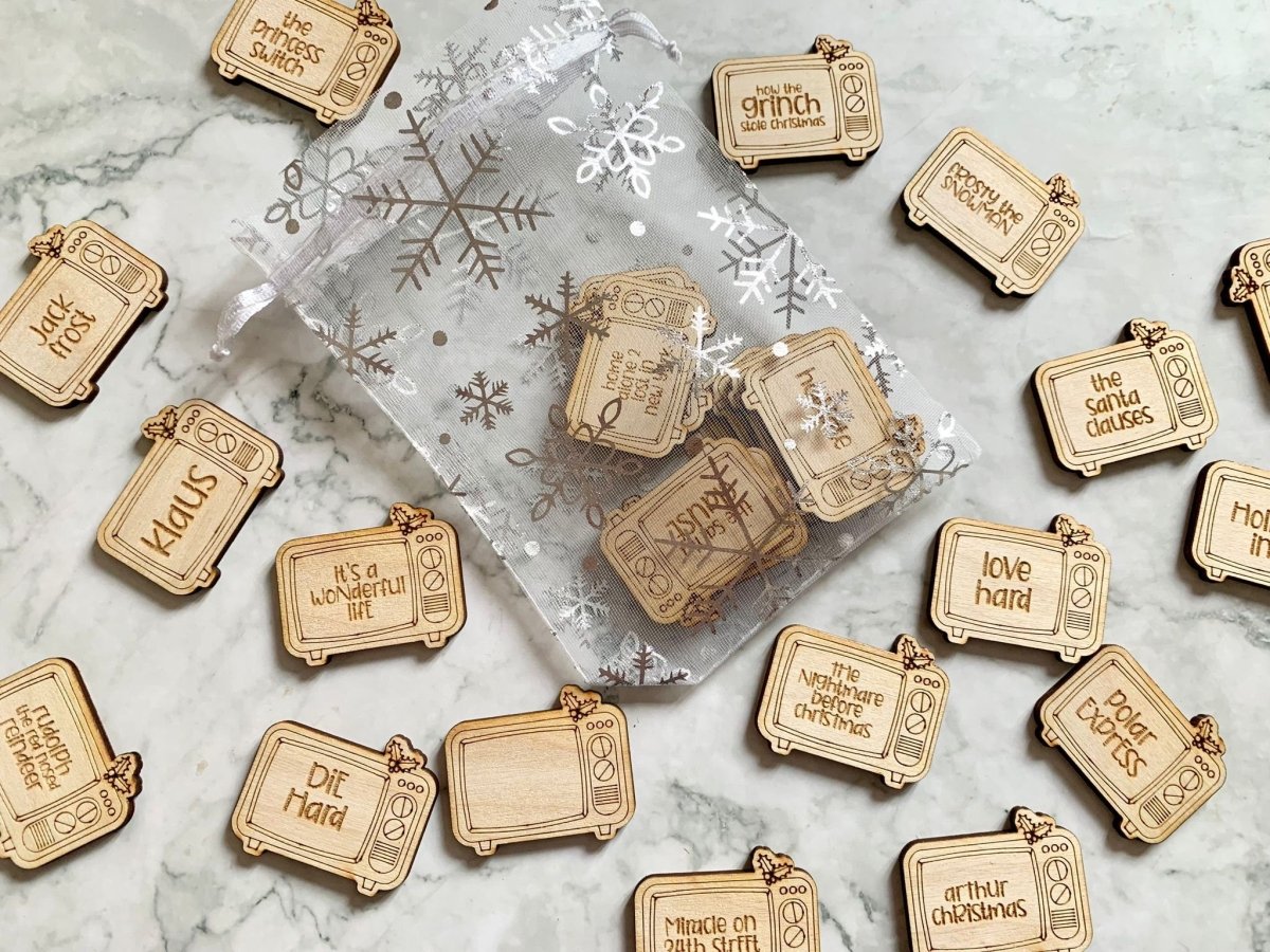 这些可爱的木制代币经过专业激光蚀刻,并且充满了可供观看的圣诞电影,非常适合替代传统的巧克力降临节日历,或作为现有降临节日历的降临节填充物。