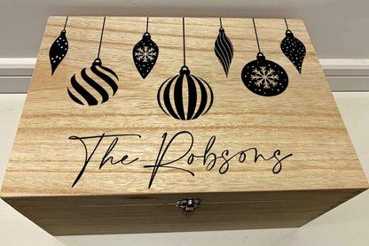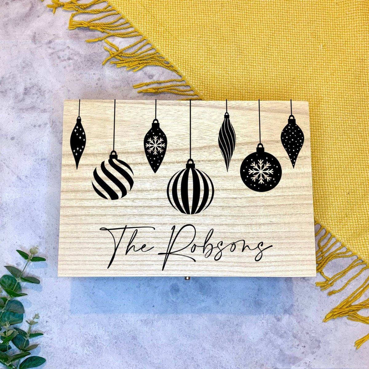 大型个性化雕刻木制圣诞平安夜礼品盒,带有圣诞饰品的纪念品记忆盒