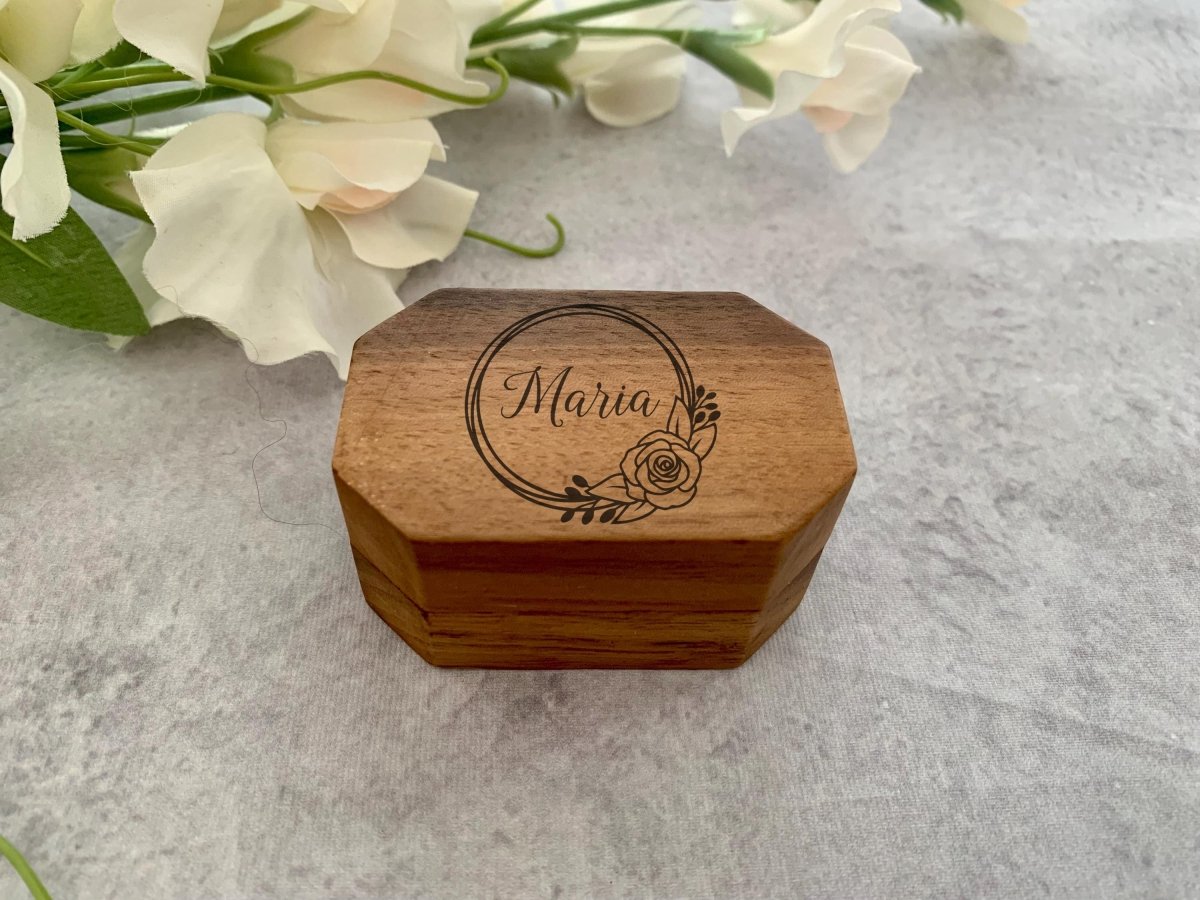 这款专业激光蚀刻的戒指盒是存放您的特殊结婚戒指或订婚戒指的完美方式。
