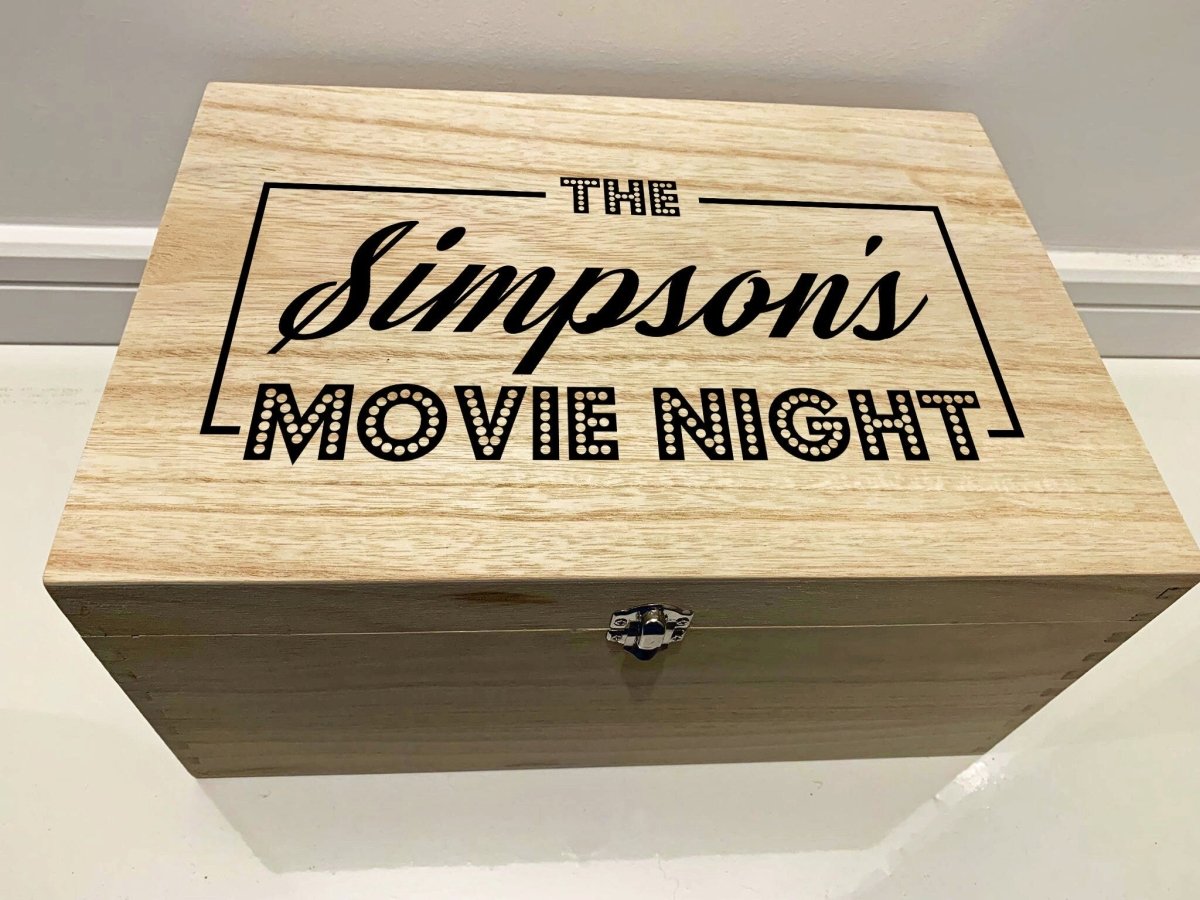 大型个性化雕刻木制纪念品记忆盒,适合电影之夜、电影之夜、夜晚、影院之夜