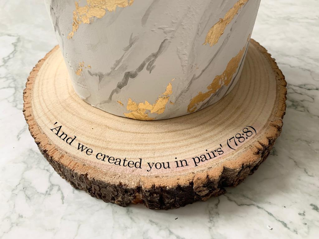 Enhance your Nikah ceremony with our personalised engraved rustic wood slice ring plate. This unique plate adds a charming touch to your special day. Each slice is customisable and makes for a perfect keepsake. Complete your celebration with this elegant and timeless addition.