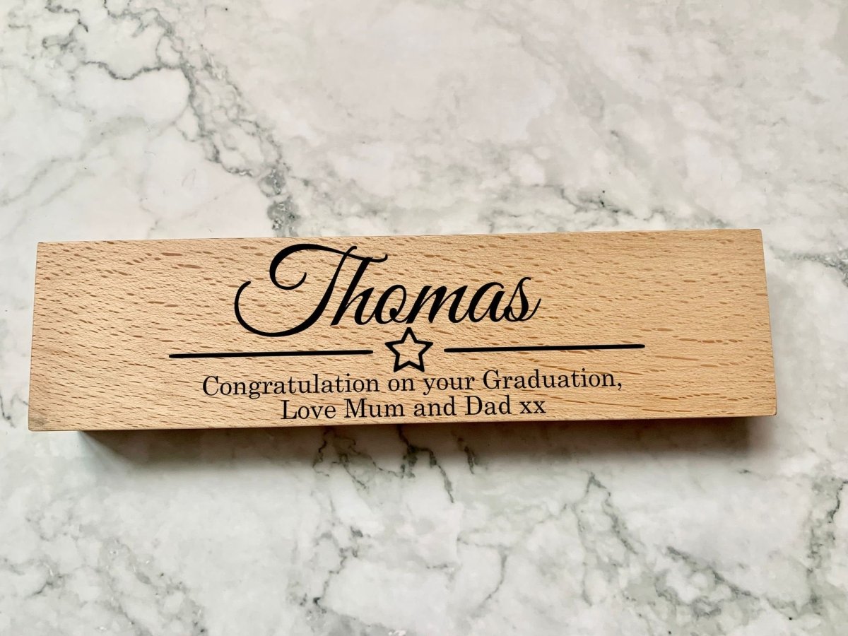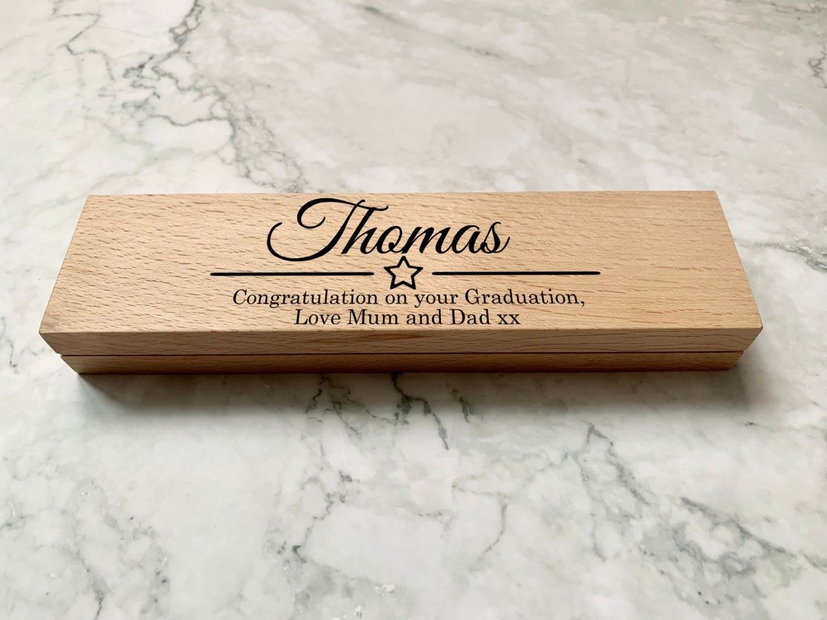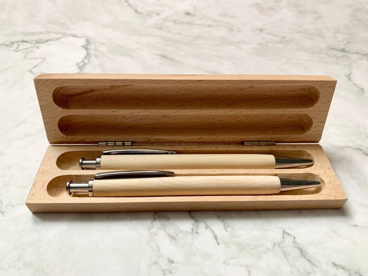 带有星形细节的个性化镌刻钢笔和铅笔礼品套装