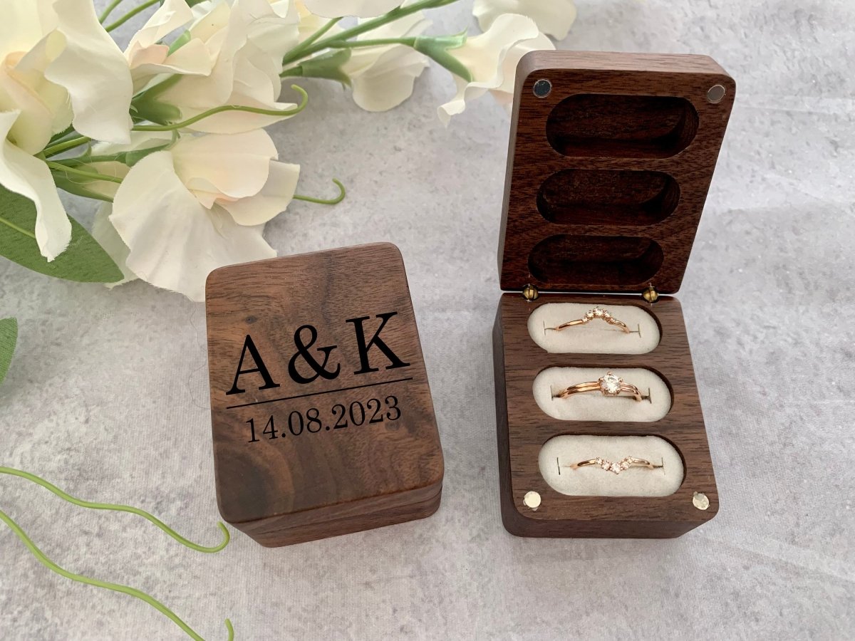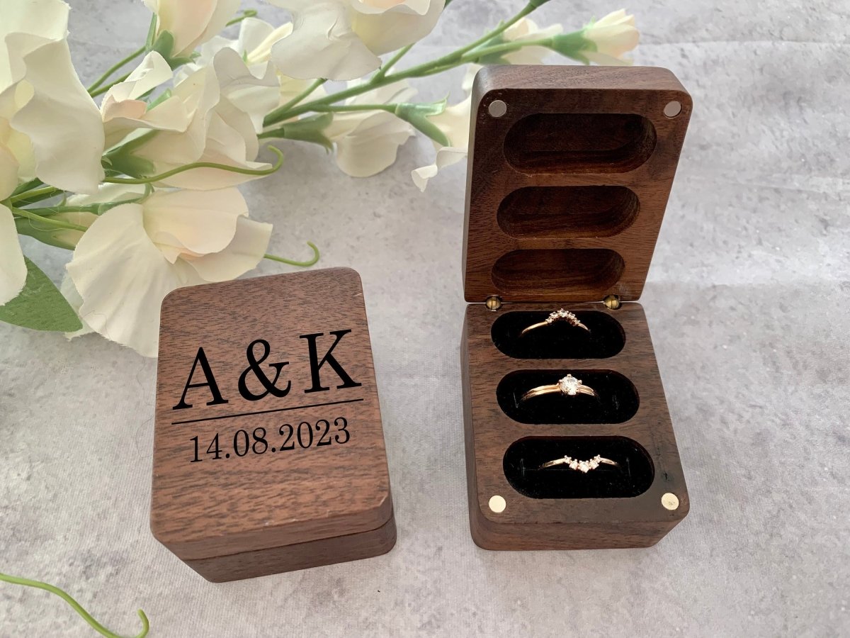 这款专业激光蚀刻的戒指盒是存放您的特殊结婚戒指、订婚戒指和永恒戒指的完美方式。