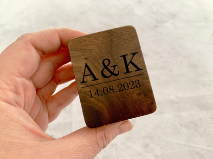 个性化矩形雕刻木制结婚戒指盒,带首字母的订婚戒指盒,周年纪念礼物