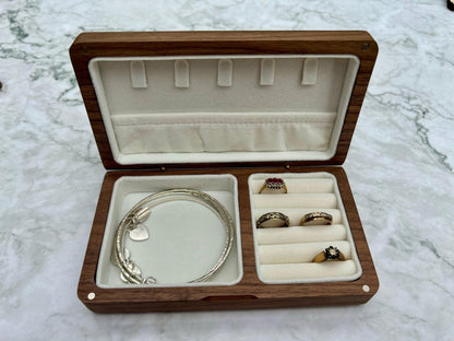 Personalised Engraved Walnut Jewellery Box, Personalised Travel Case for Women, Bridesmaid Gift, Wooden Jewellery Organiser
