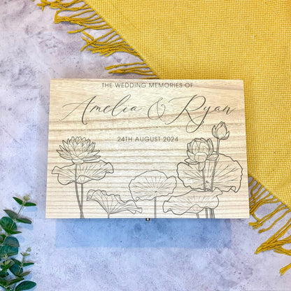 Personalised Wedding Keepsake Box with Lotus Water Lilies