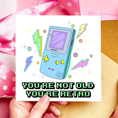 You're Not Old Birthday Card, Retro Gaming, Gameboy Colour, Games Console, 16 Bit, Pixel Card